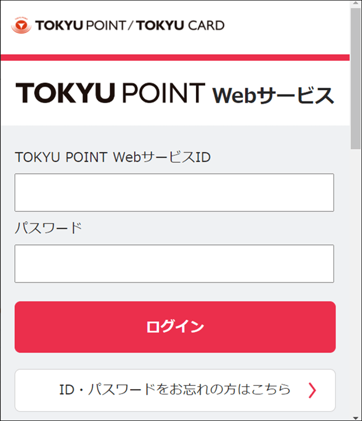 (1)TOKYU CARDのID・パスワードにてTOKYU POINT Webサービスにログイン