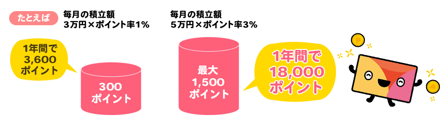 毎月の積立額に応じて、最大3%ポイントが貯まります。