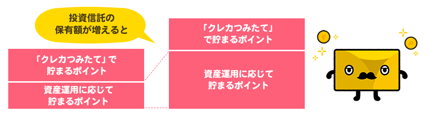 「クレカつみたて」で貯まるポイントとは別に投資信託の保有残高や資産運用に応じたポイントが貯まります。